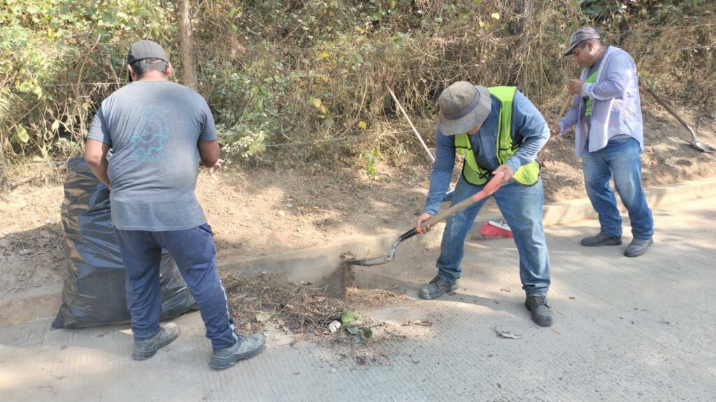 El Gobierno Municipal de Atoyac de Álvarez llevó a cabo una jornada de trabajo en la colonia Vicente Guerrero, donde, en coordinación con la Dirección de Obra Pública y mediante el programa de Empleo Temporal, se desplegaron cuatro cuadrillas para realizar labores de limpieza y retiro de tierra en la calle Abrazo de Acatempan.