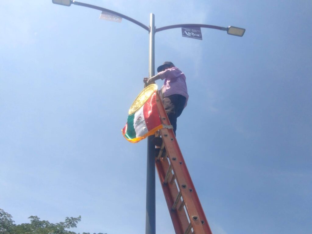 Con motivo de las próximas celebraciones patrias, el Gobierno Municipal de Atoyac de Álvarez, a través de la Dirección de Alumbrado Público, inició este 2 de septiembre la colocación de adornos alusivos a la independencia de México en el bulevar Juan Álvarez.