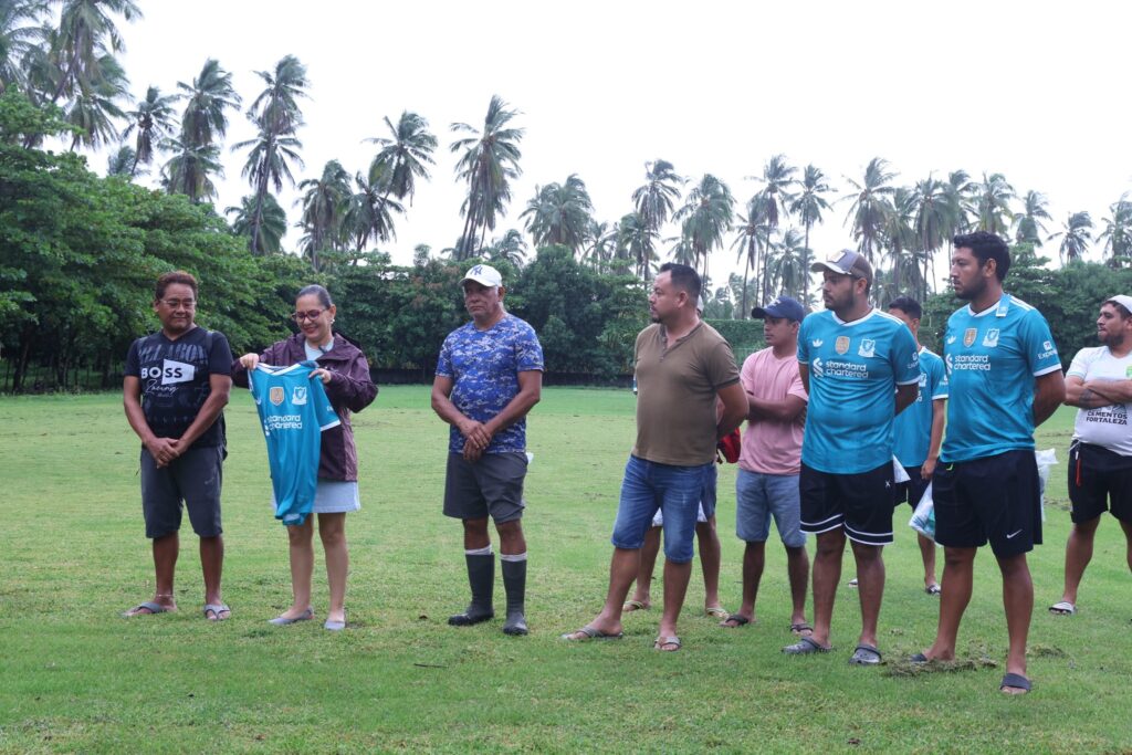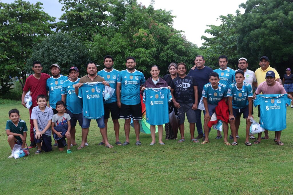 Durante su visita, la alcaldesa hizo entrega de uniformes deportivos al equipo de la categoría Segunda Fuerza y sostuvo un diálogo con las categorías menores, reconociendo su esfuerzo, disciplina y pasión por el deporte.